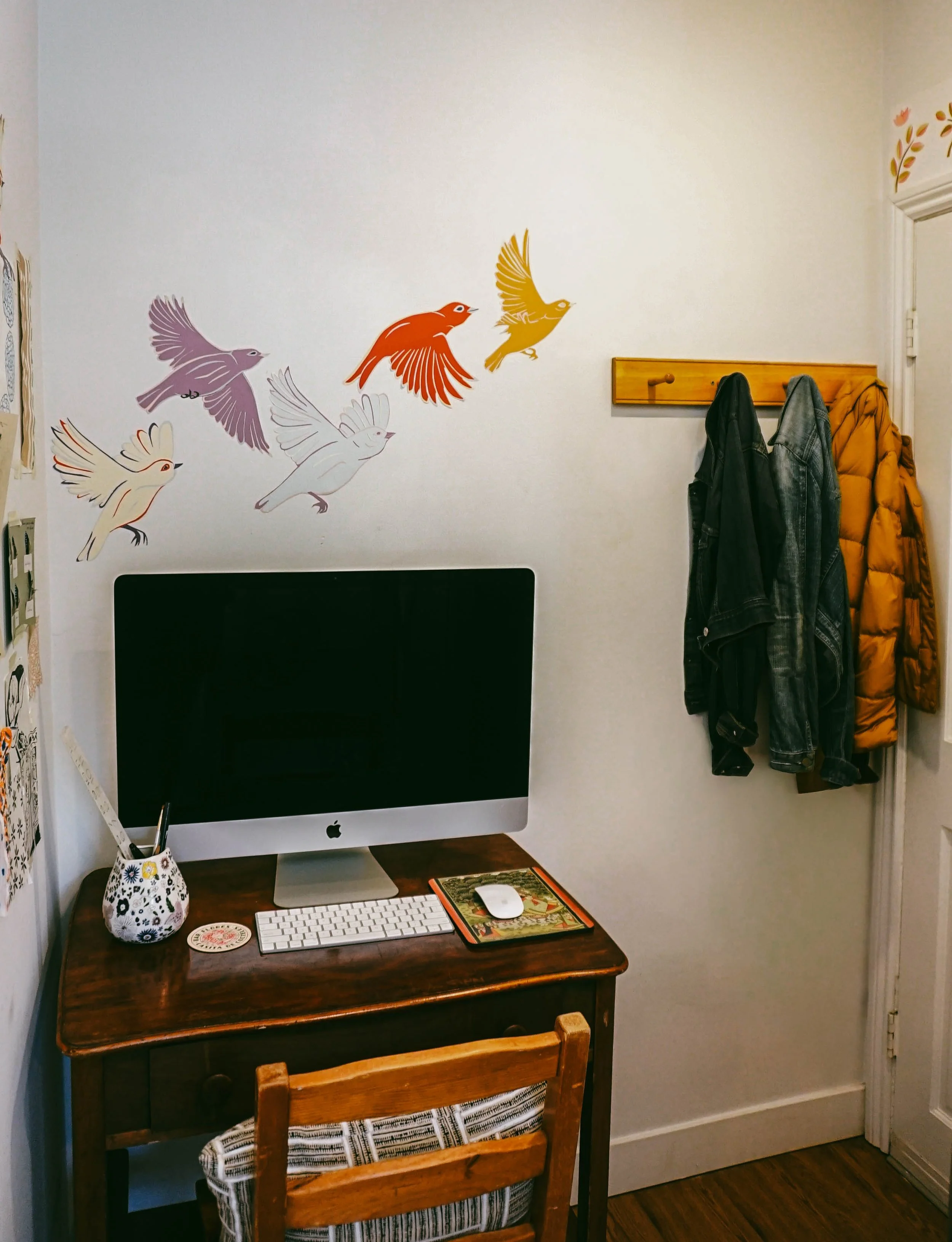 As a renter, I wanted to make my space my own. Avoiding painting or damaging my walls, I created motifs that frame my doors and windows. This idea continues to expand and I am happy to offer easy to install, adhesive decorations for renters and homeowners.